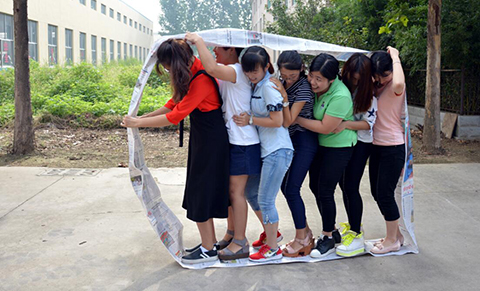 游戲簡單易行,將多份報紙適當裁剪,粘成大紙環,員工分為兩隊,每隊員工進入大紙環內,踩踏紙環,循序漸進。以紙環完整, 先到達終點的一隊為獲勝方。游戲中充分體現出團隊協作,互幫互助,團結共進的重要性。