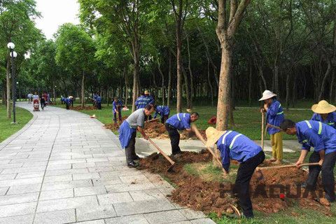二、所有植物澆返青水,土壤板結的老草坪先梳草、打孔、施肥后澆水。