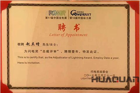 榮譽來自于實力的匹配。華全總經理趙立增先生榮獲閃電獎“總裁評審”的至高榮譽,這反映了行業對華全實力的充分肯定。